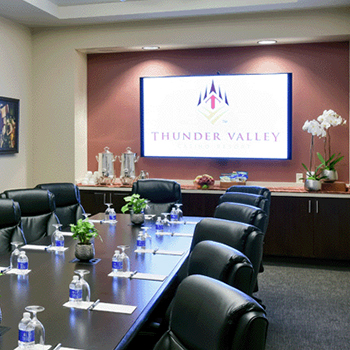 Thunder Valley offers two boardrooms with a reception area just outside of the two spaces. To create the high-energy atmosphere of the war-room setting or convert to a more intimate meeting roundtable setting, our boardrooms are available to accommodate groups up to 14 attendees.
